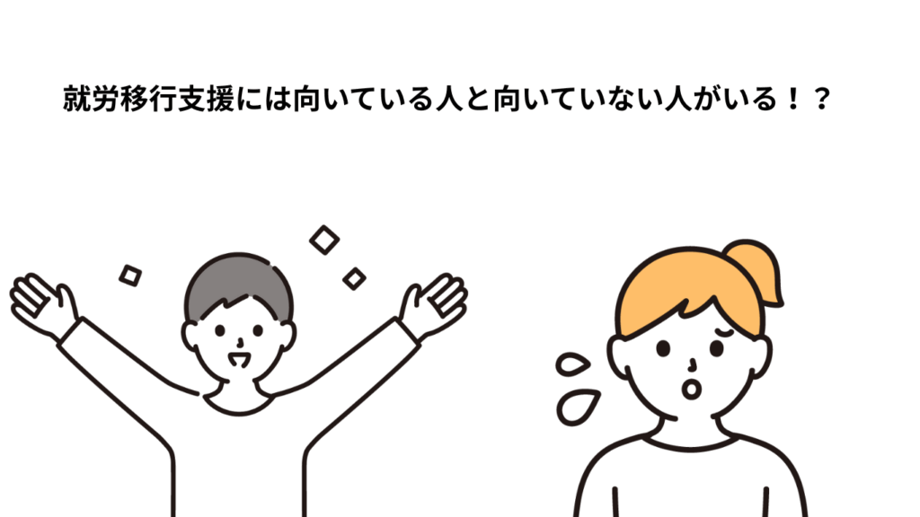 就労移行支援をご利用の方の中には就労移行支援のサービスに向いている人と向いていない人がいらっしゃいます。