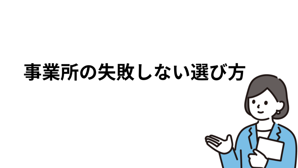 それでは、事業所選びに失敗しない選び方のポイントをご紹介していきたいと思います。